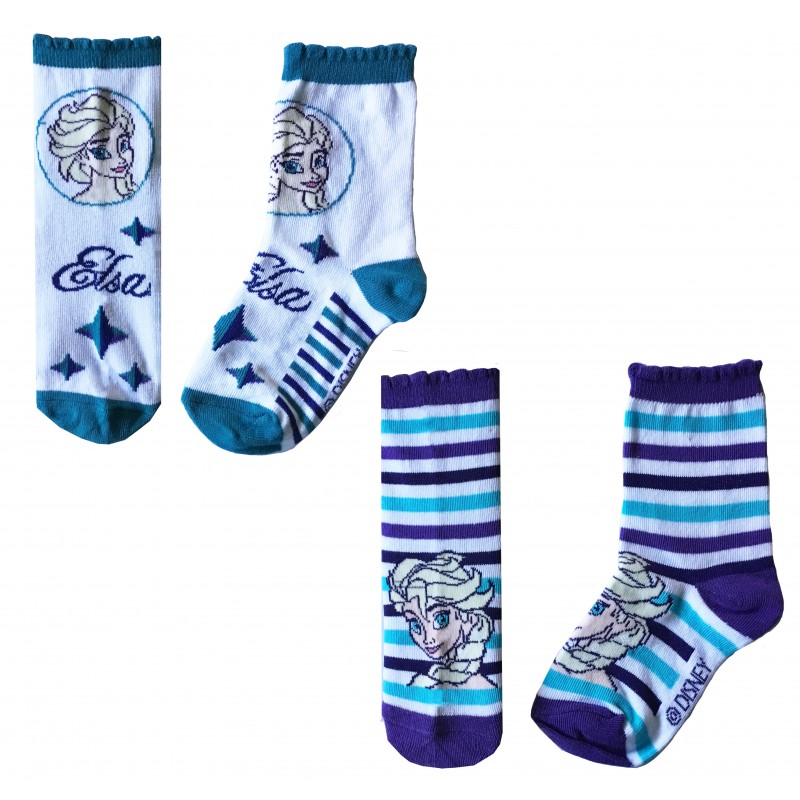 • Twin pack of girl's (children's) socks featuring Disney Frozen's Elsa.