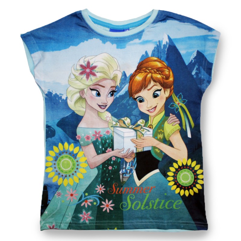 Girls short sleeved t shirt with a Disney Frozen theme.