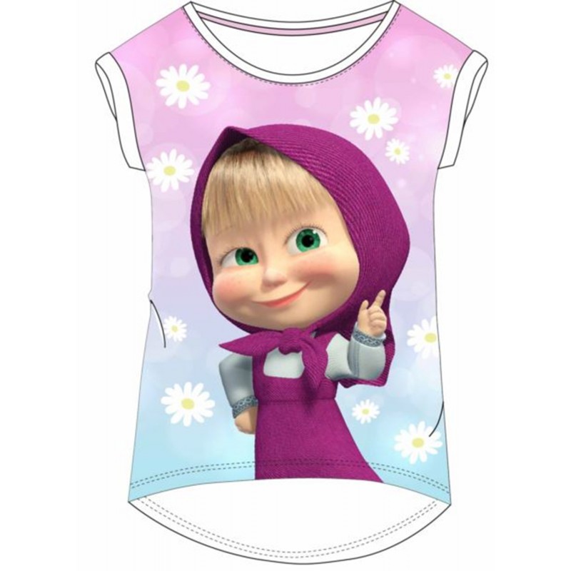 Girls cotton t shirt with a large sublimated print of Masha to the front of the garment.