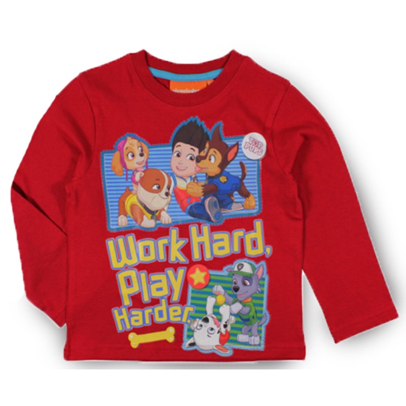 Paw Patrol Long Sleeved T Shirt - Work Hard - Red