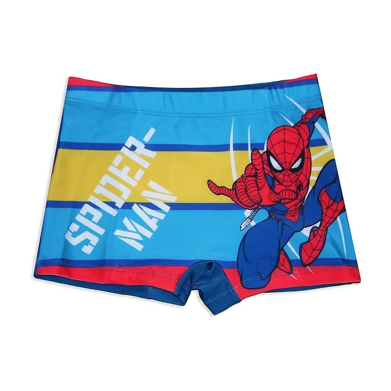 Boys swimming trunks with a full sublimation print to the front of the garment of Spiderman