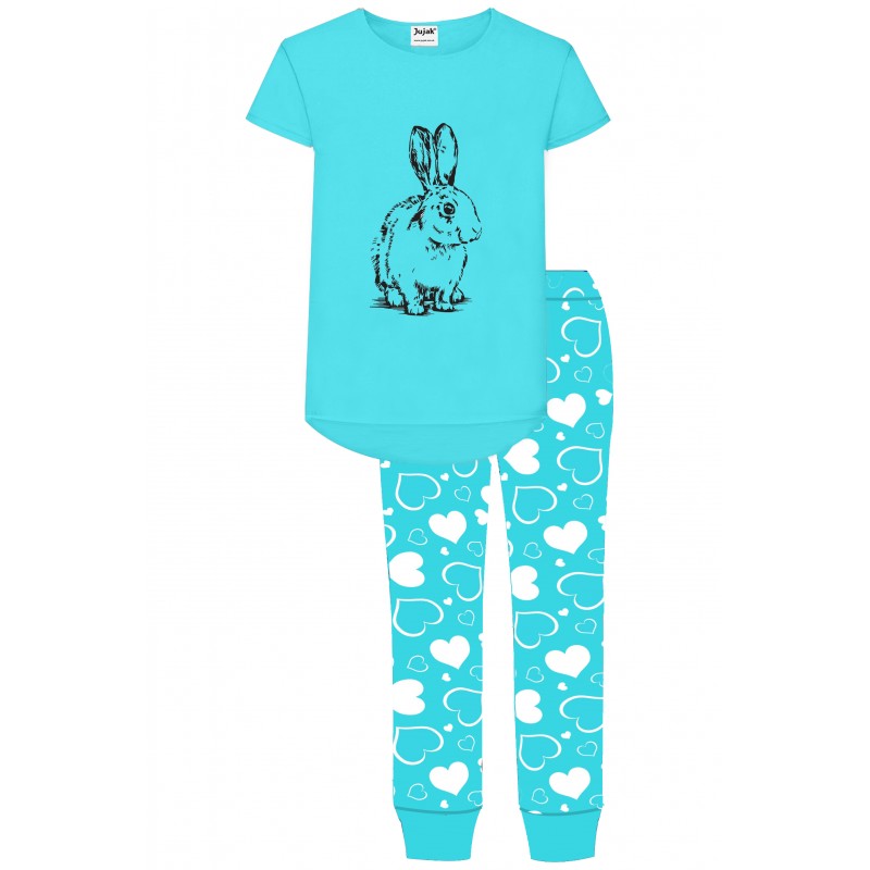 • Girls cotton pyjama set with a white top and pink & white trousers.