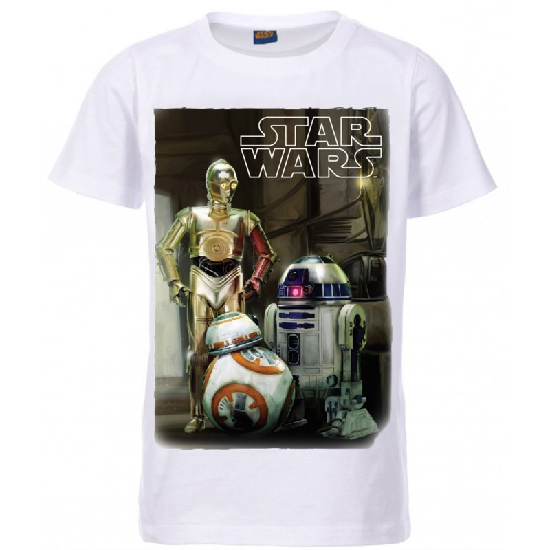 Lovely soft short sleeved t shirt depicting C3PO, R2D2 and BB8 from Star Wars.