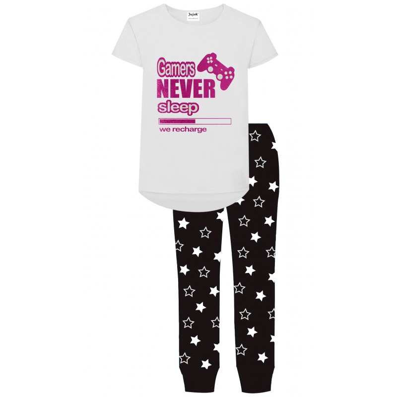T shirt has a Gamers Never Sleep motif to the front, short sleeves and a dipped hem at the back.